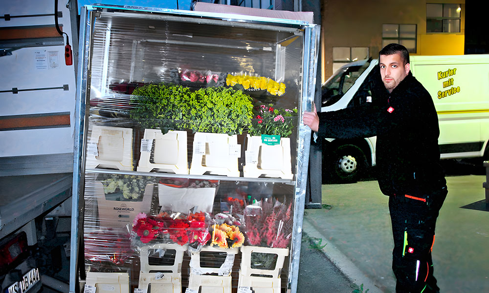Nachtumschlag für einen Blumengroßhandel mit regionalen Auslieferungen.